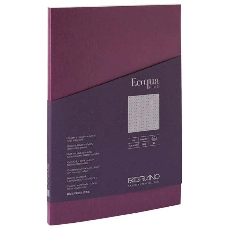 Sveska FABRIANO EcoQua A5, 90 listova, 90g/m2, dikto/tačkice, meki uvez, ljubičasta.